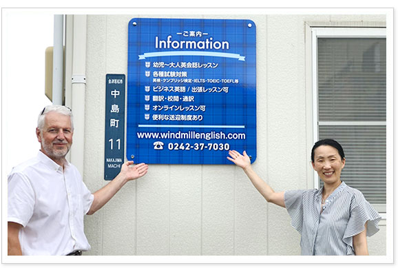 The Windmill English Centre (WEC) has been providing high quality English language education in and around Aizuwakamatsu since 1995. The school was established by Stephen and Junko Holland, a British/Japanese couple who saw the need for an international standard school of English in Aizuwakamatsu. The organization of the school is based on Stephen’s 10 years of teaching experience with the British Council in 4 different countries thus the school offers effective, enjoyable, communicative lessons with the aim to help students to become confident and competent speakers of English.