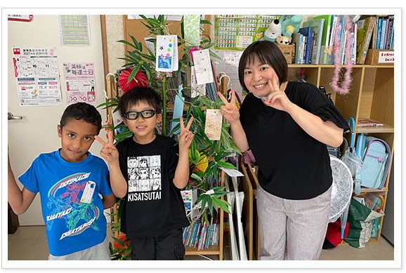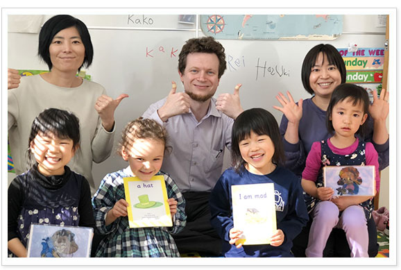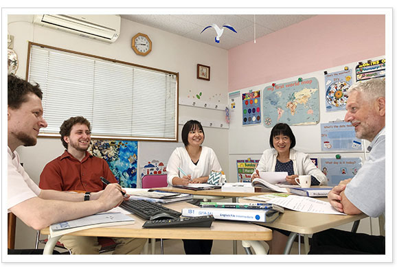 There is an enjoyable mix of nationalities amongst the teaching staff at the school, reflecting the fact that English is the most useful tool for international communication. The school employs native speaker teachers from the UK, the USA, Canada, Australia, New Zealand, Ireland and South Africa. The school also employs non-native speaker teachers of English with excellent English and English teaching skills from the Philippines and other countries. The school also has Japanese teachers of English, a bilingual Japanese receptionist and manager and part-time drivers to bring children to classes and take them home afterwards.